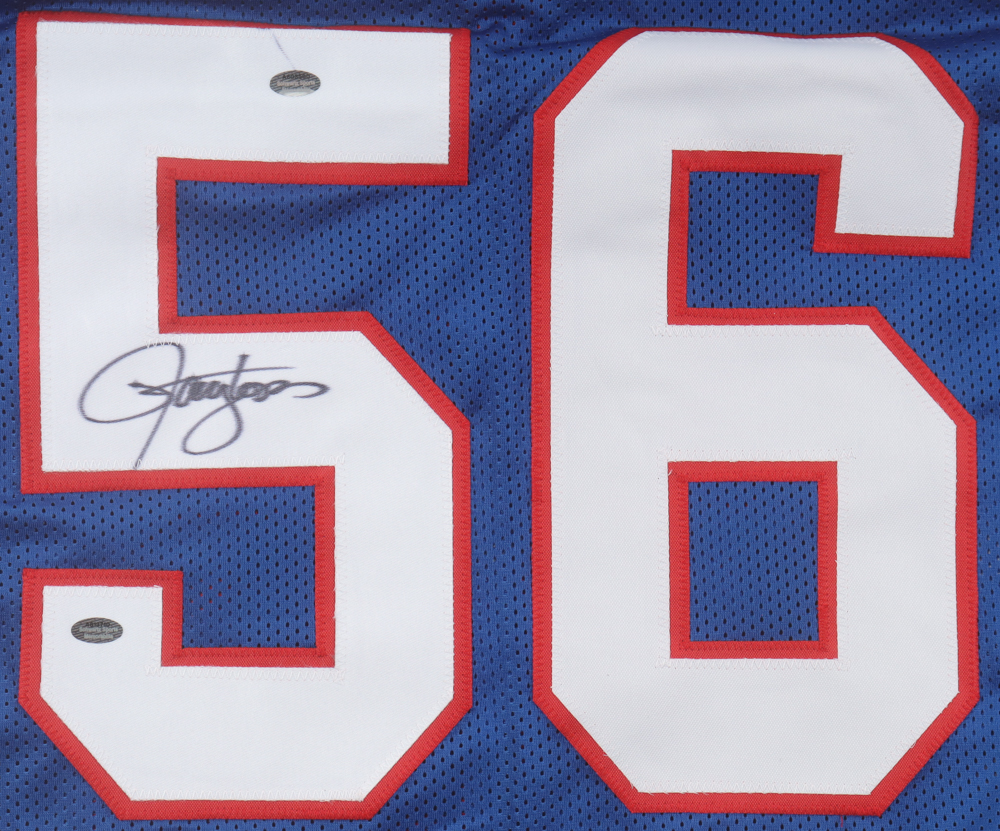 Custom jersey with everything sewn own, size XL. Hand-signed by Lawrence Taylor (HOF).