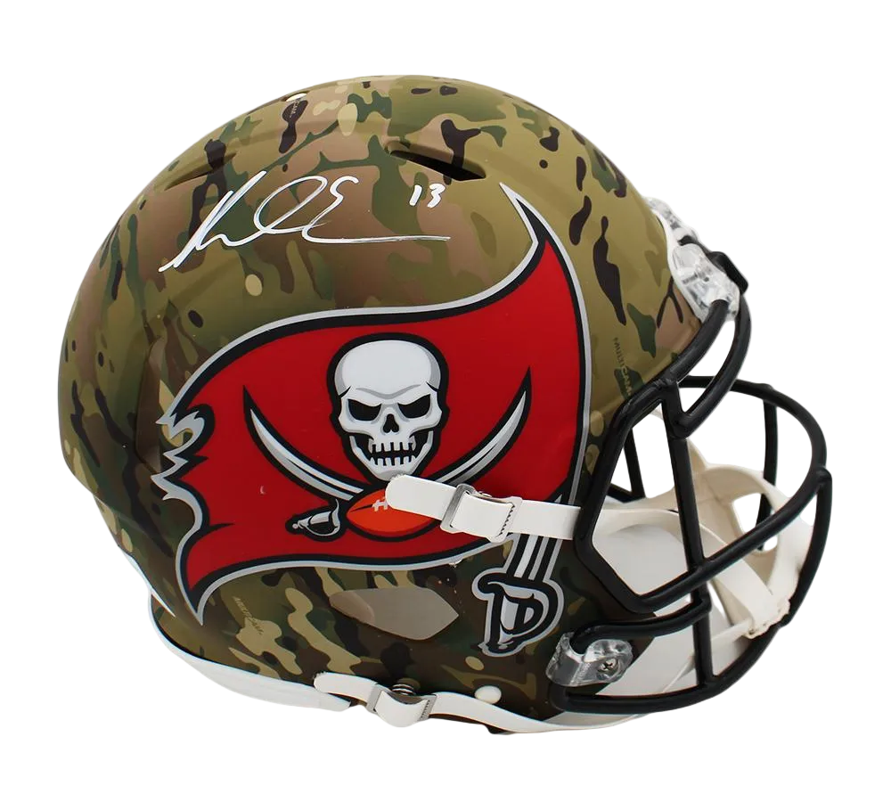 Riddell Tampa Bay Buccaneers full-size authentic on-field camo alternate speed helmet. Hand-signed by Mike Evans.