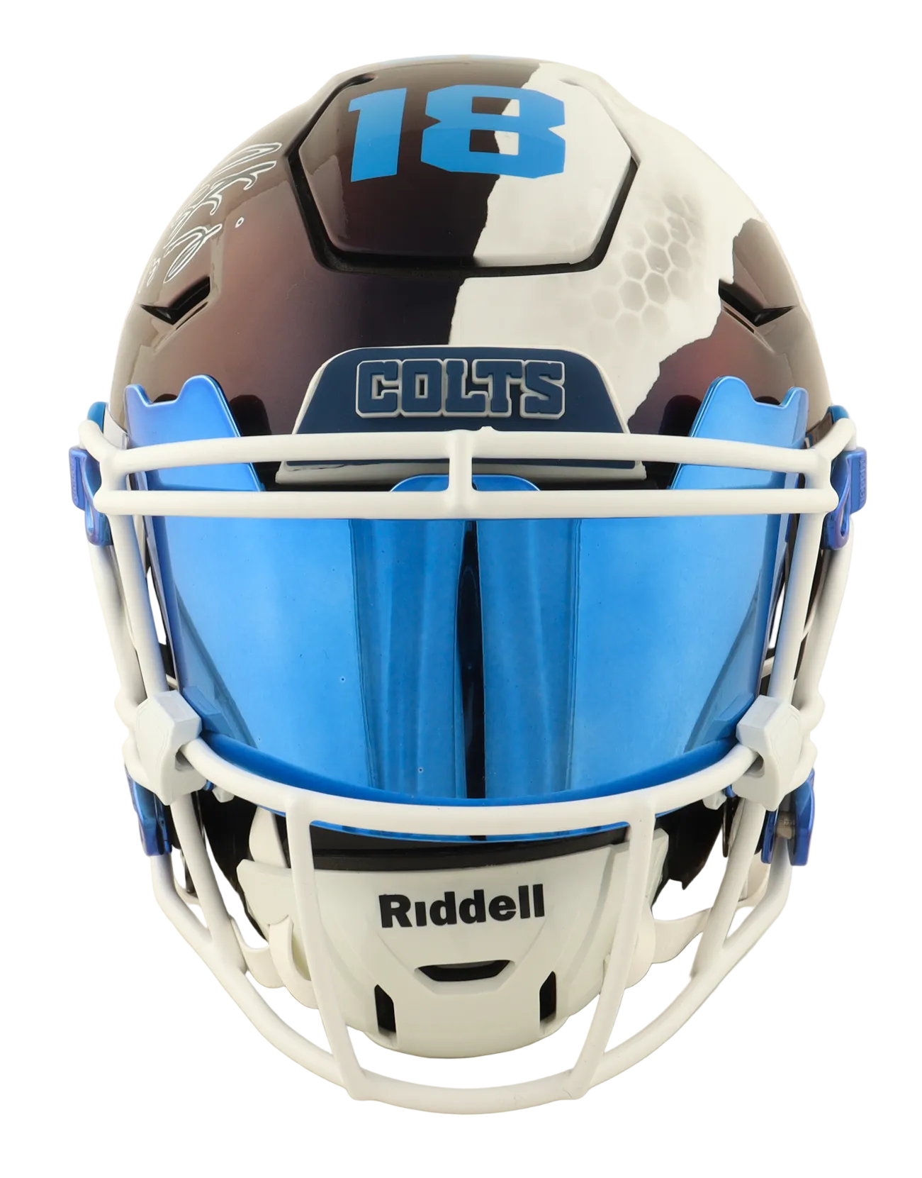 Don't miss your chance to own an authentic On-Field Full Size Riddell SpeedFlex Helmet (not a replica). This is an Authentic Indianapolis Colts custom painted full size on-field Speedflex helmet with visor signed by star quarterback and Hall of Famer Peyton Manning.