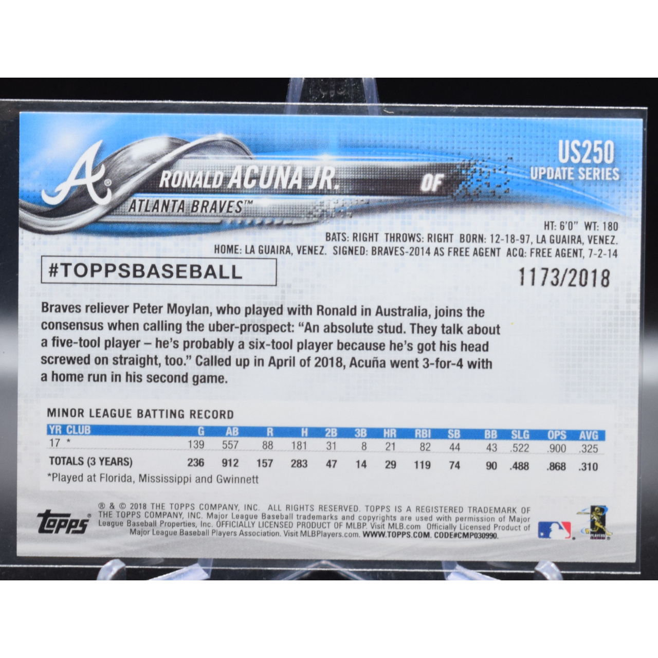 2018 Topps Update Baseball - Ronald Acuna JR US250 - Gold /2018