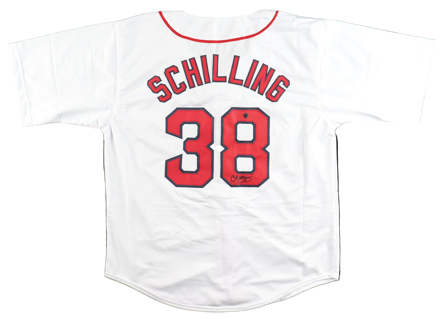 Custom jersey with everything sewn on, size XL. Hand-signed by Curt Schilling.