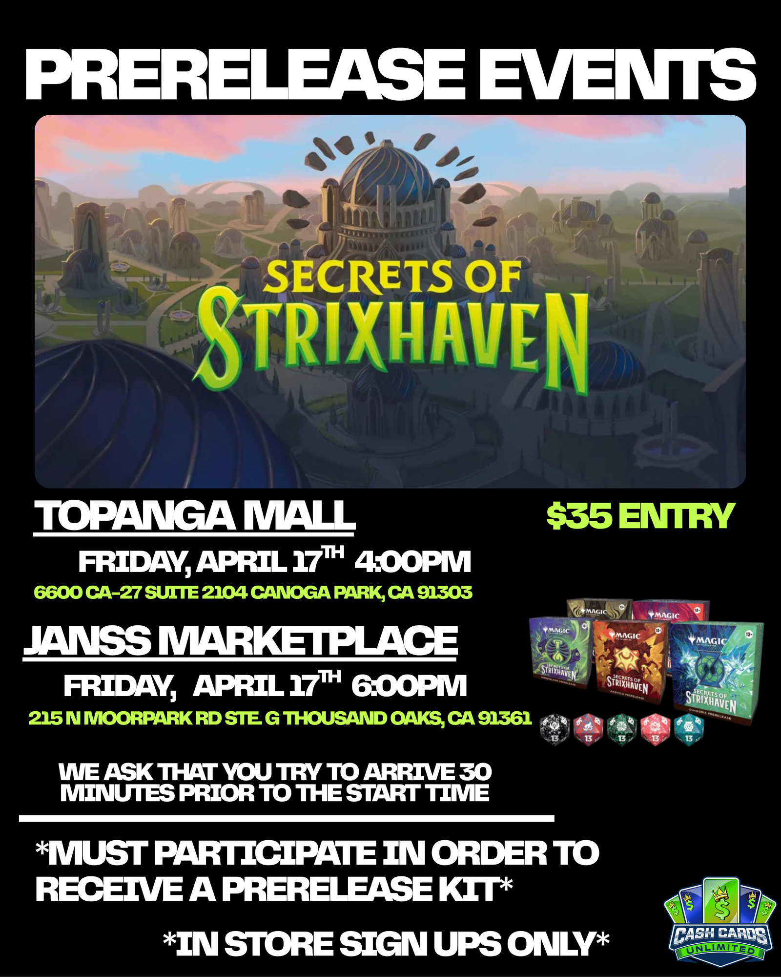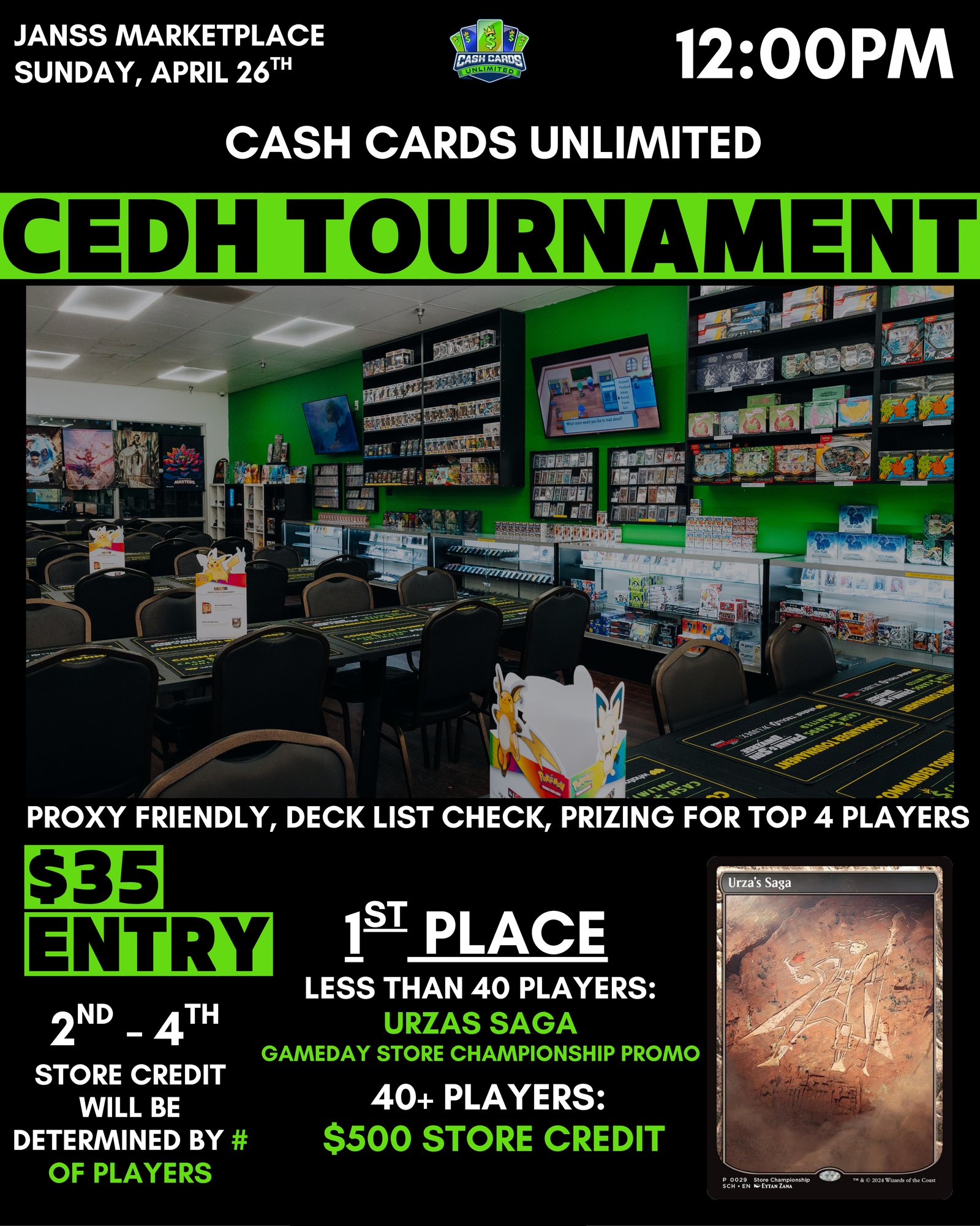 Casual game play! Trading! Giveaways/Raffles throughout the event!