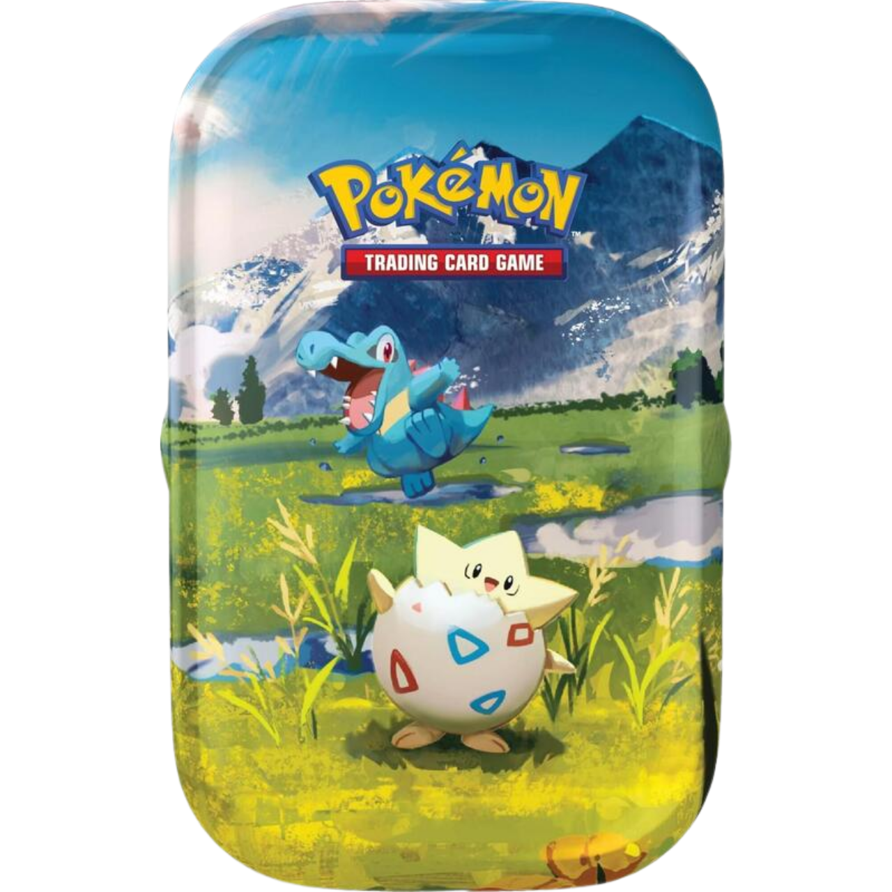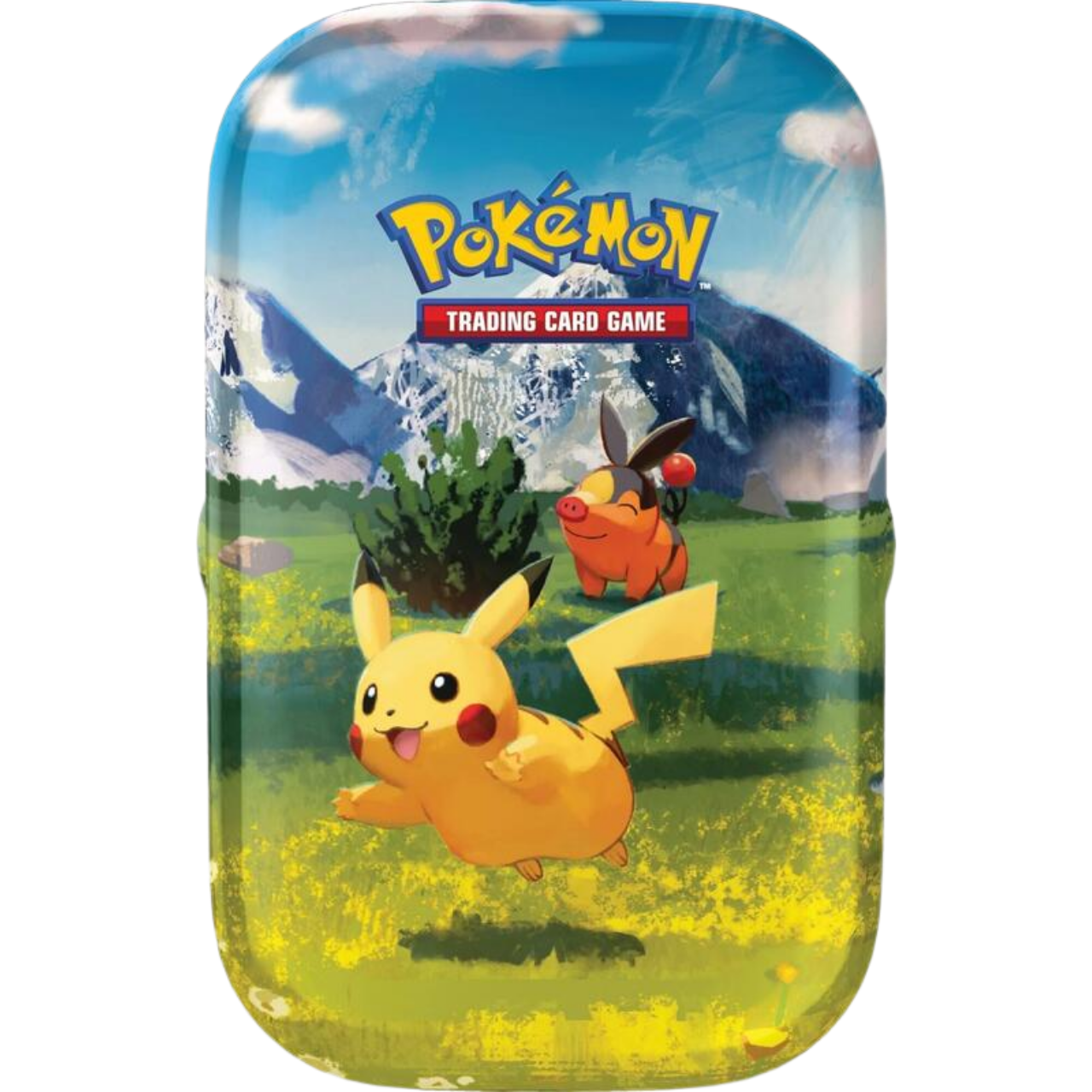 Each mini tin comes with two booster packs, a metallic Pokemon coin, and “a Pokemon art card showing the art from this Mini Tin — you can collect and combine all ten!”